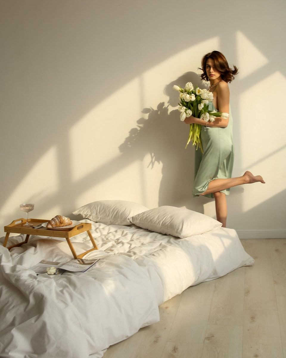 Советую выбирать одежду в пастельной гамме — бежевый, пудровый, молочный, пыльно-голубой. Это идеально сочетается с интерьером.